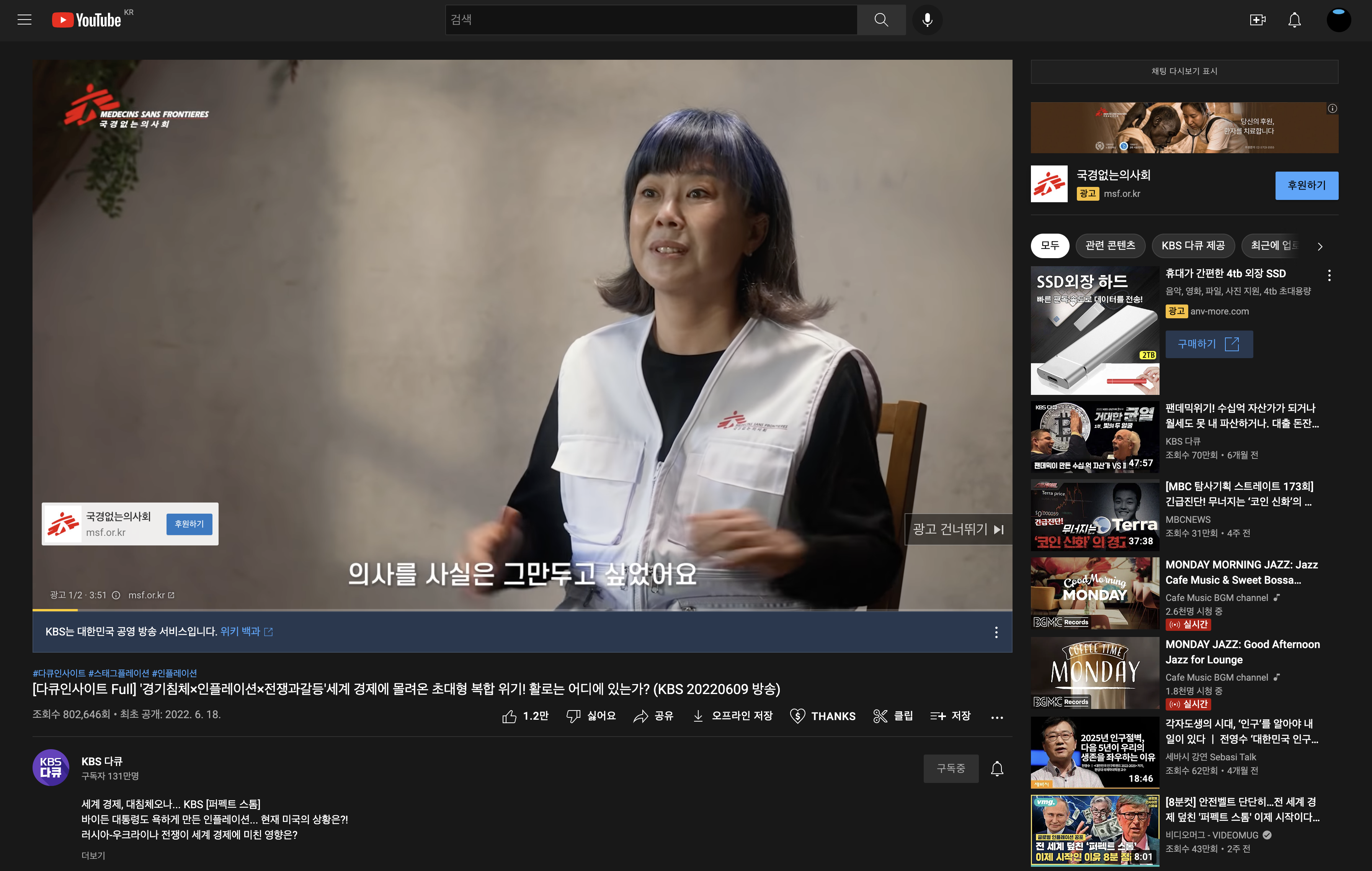 유튜브 또한 우측 배너 광고도 뜨지 않을뿐더러, 시작 광고도 뜨지 않습니다. 유튜브 프리미엄을 사용하지도 않았음에도!
