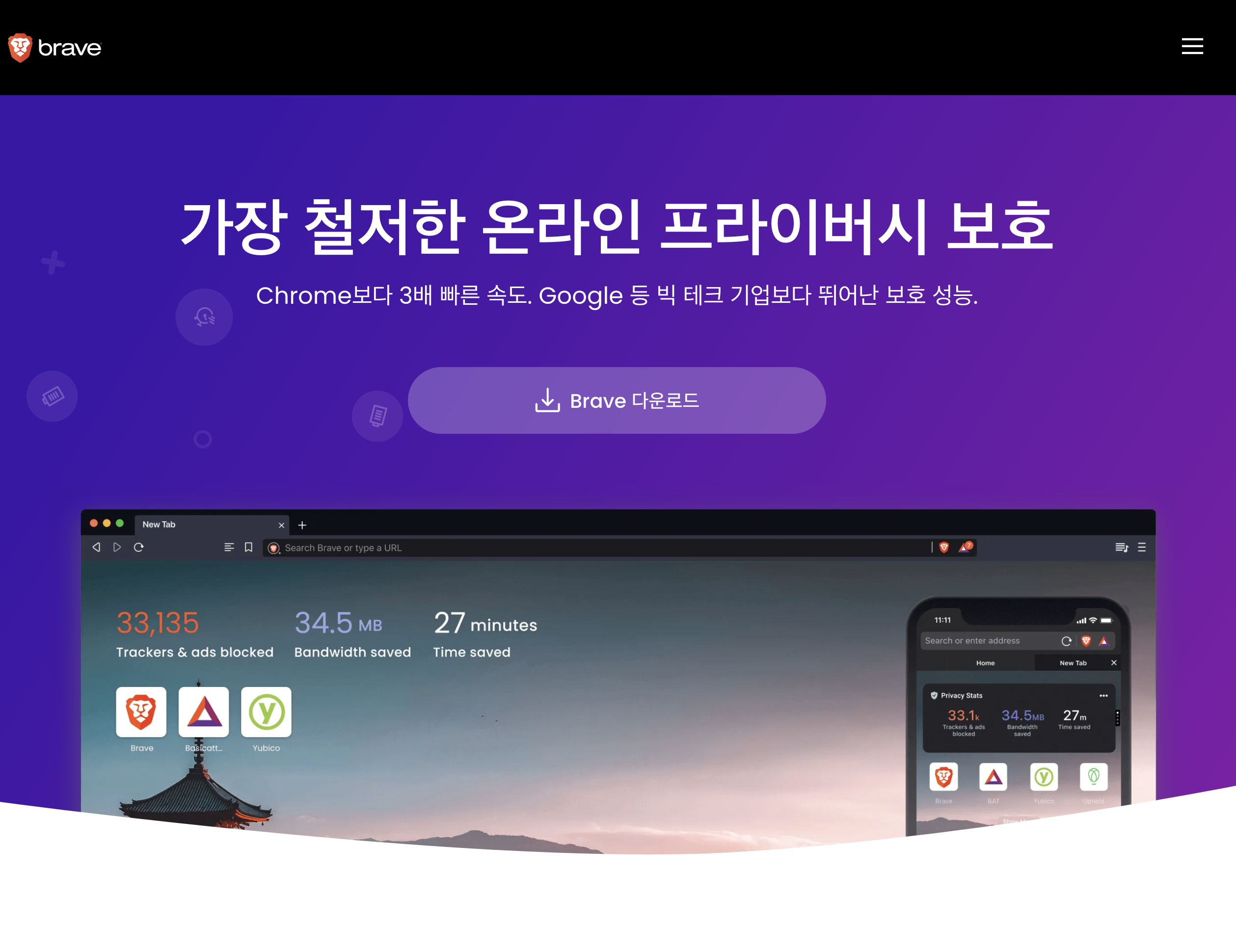 - BRAVE 다운로드 링크 : https://brave.com/ko/